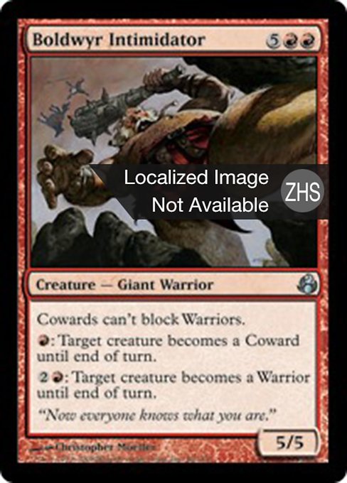 ![]() Variations— Parts— | Intimidatore di Boldwyr5 / 5 I Vigliacchi non possono bloccare i Guerrieri.
