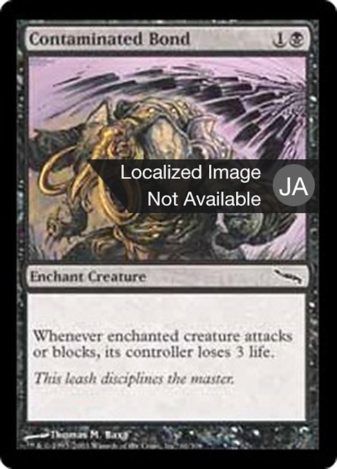 ![]() Variations— Parts—  | Legame ContaminatoOgniqualvolta la creatura incantata attacca o blocca, il suo controllore perde 3 punti vita.