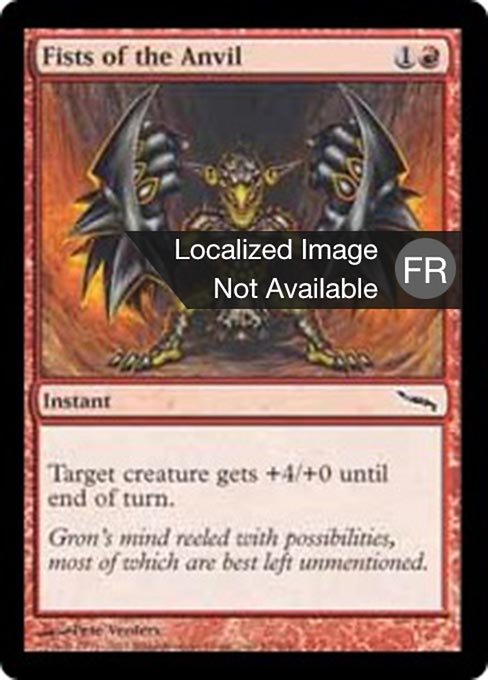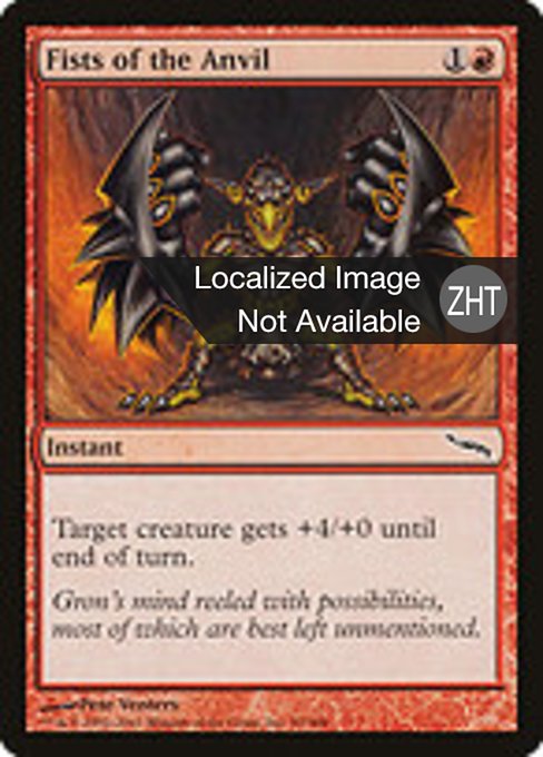 ![]() Variations— Parts— | Mani dell'IncudineLa creatura bersaglio prende +4/+0 fino alla fine del turno.