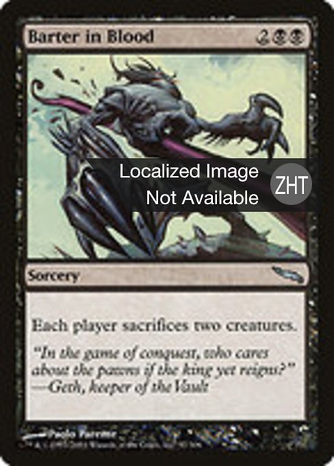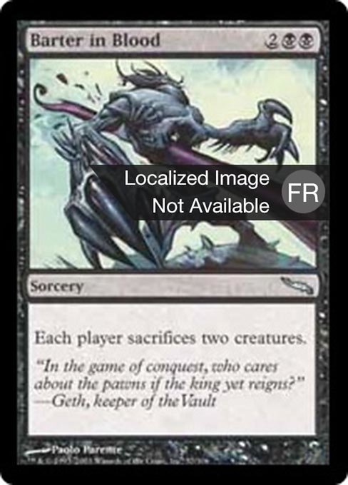 ![]() Variations— Parts— | 血のやりとり各プレイヤーは、クリーチャーを2体生け贄に捧げる。