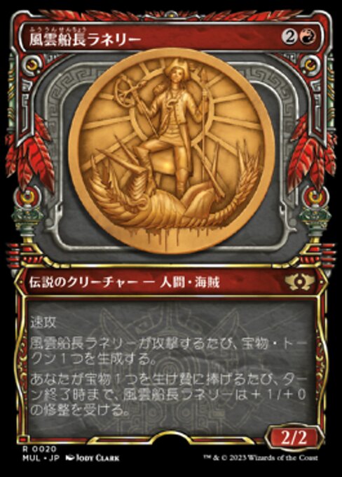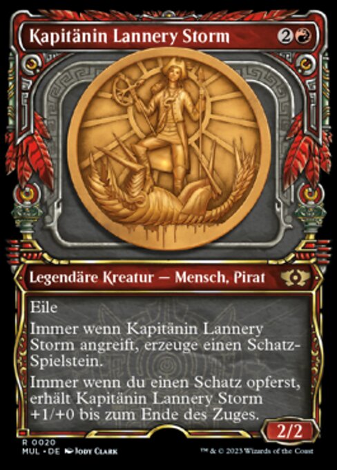 ![]() Variations : 3Parts : 2 | Captain Lannery Storm2 / 2 Haste Whenever Captain Lannery Storm attacks, create a Treasure token. (It's an artifact with " Whenever you sacrifice a Treasure, Captain Lannery Storm gets +1/+0 until end of turn.