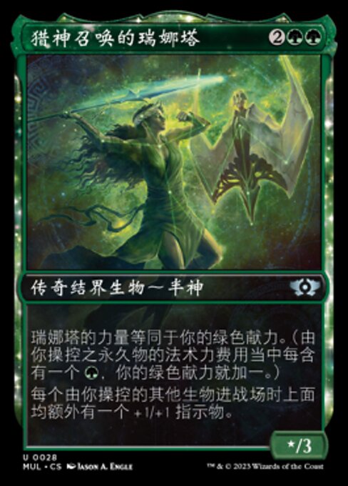 ![]() Variations— Parts— | Renata, Chiamata alla Caccia* / 3 La forza di Renata è pari alla tua devozione al verde. (La tua devozione al verde è la somma dei Ogni altra creatura che controlli entra nel campo di battaglia con un segnalino +1/+1 addizionale.