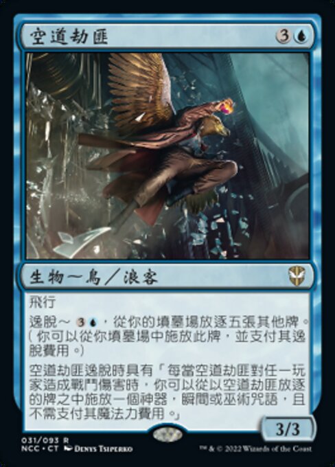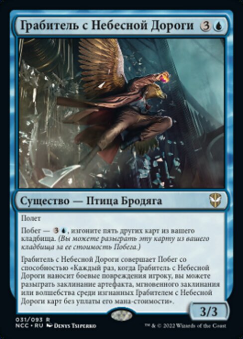 ![]() Variations : 1Parts— | Skyway Robber3 / 3 Flying Escape— This creature escapes with "Whenever this creature deals combat damage to a player, you may cast an artifact, instant, or sorcery spell from among cards exiled with this creature without paying its mana cost."