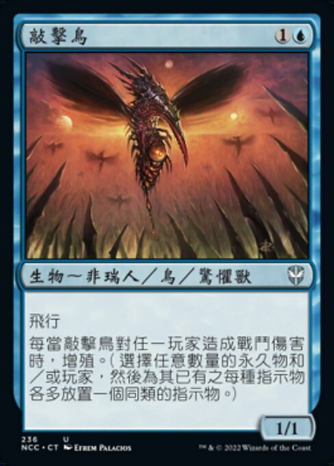 |  Variations— Parts— | かき鳴らし鳥1 / 1 飛行 かき鳴らし鳥がプレイヤー1人に戦闘ダメージを与えるたび、増殖を行う。(望む数のパーマネントやプレイヤーを選び、その後すでにそこにあるカウンター1種類につき、そのカウンター1個を与える。)