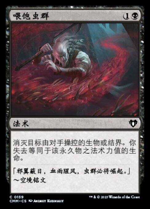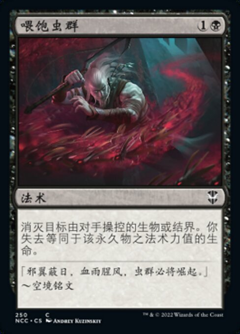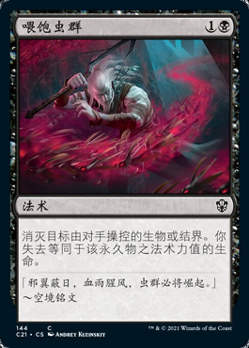 |  Variations— Parts— | 喂饱虫群消灭目标由对手操控的生物或结界。你失去等同于该永久物之法术力值的生命。