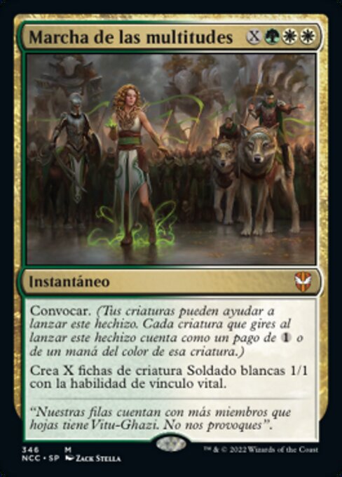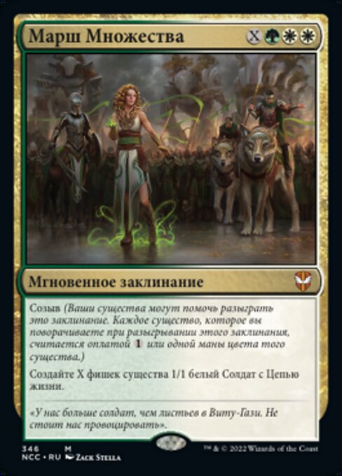|  Variations— Parts— | 大军行进召集(此咒语能用你的生物来协助施放。你于施放此咒语时每横置一个生物,就能为此咒语支付 派出X个1/1白色,具系命异能的士兵衍生生物。