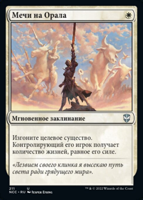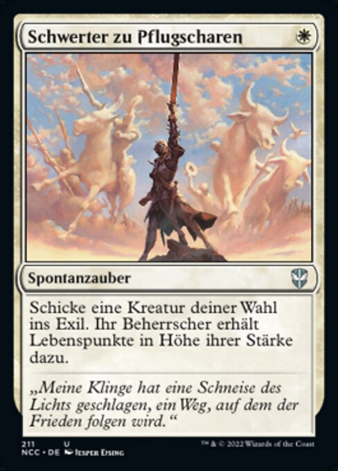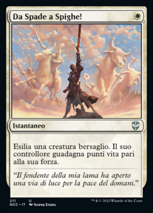 |  Variations— Parts— | 化劍為犁放逐目標生物。其操控者獲得等同於其力量的生命。