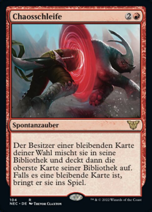 ![]() Variations— Parts— | Chaos WarpThe owner of target permanent shuffles it into their library, then reveals the top card of their library. If it's a permanent card, they put it onto the battlefield.