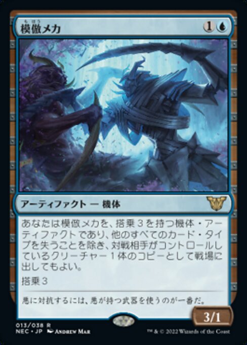 ![]() Variations : 1Parts— | Imposter Mech3 / 1 You may have this Vehicle enter as a copy of a creature an opponent controls, except it's a Vehicle artifact with crew 3 and it loses all other card types. Crew 3