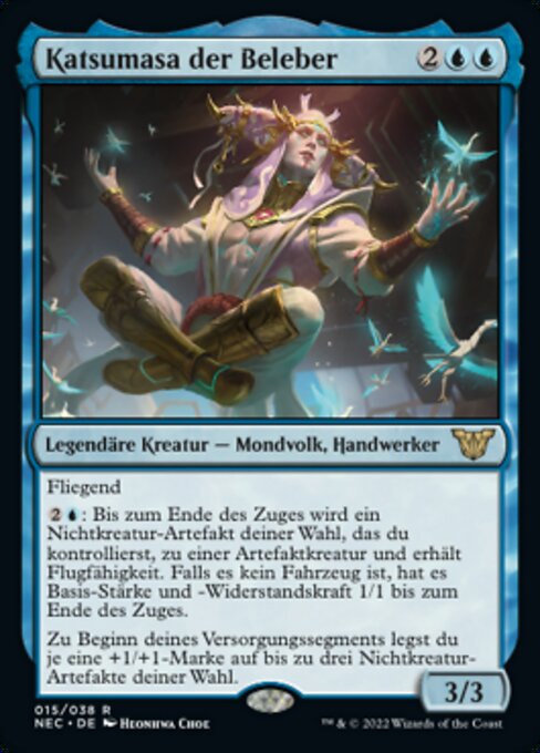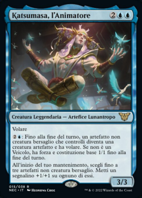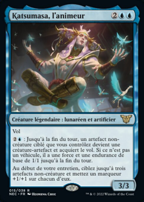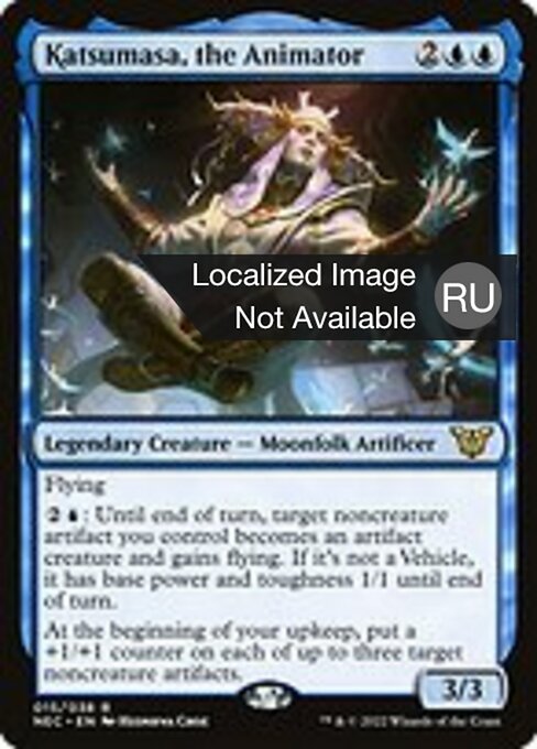 ![]() Variations : 1Parts— | Katsumasa, the Animator3 / 3 Flying At the beginning of your upkeep, put a +1/+1 counter on each of up to three target noncreature artifacts.