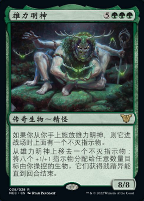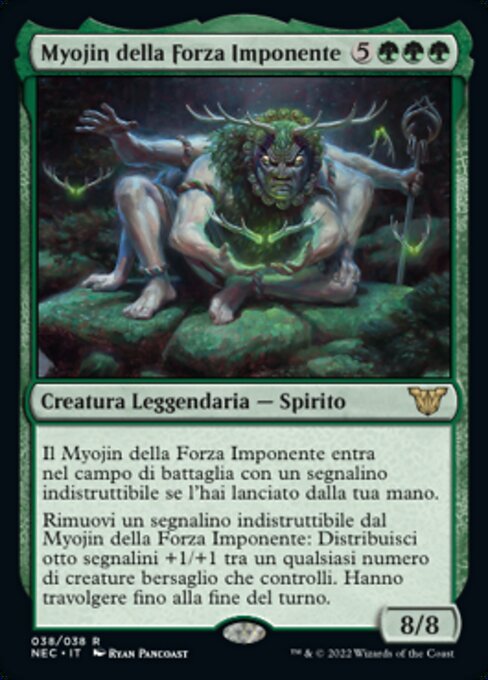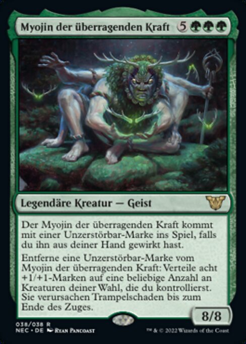 ![]() Variations : 1Parts— | Myojin of Towering Might8 / 8 Myojin of Towering Might enters with an indestructible counter on it if you cast it from your hand. Remove an indestructible counter from Myojin of Towering Might: Distribute eight +1/+1 counters among any number of target creatures you control. They gain trample until end of turn.