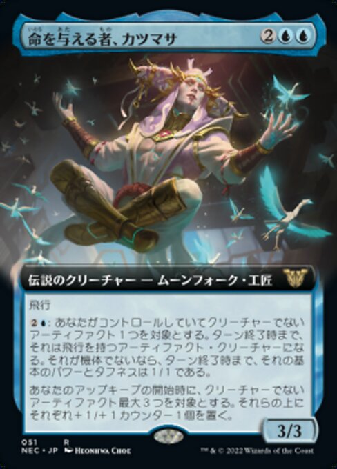 ![]() Variations : 1Parts— | Katsumasa, the Animator3 / 3 Flying At the beginning of your upkeep, put a +1/+1 counter on each of up to three target noncreature artifacts.