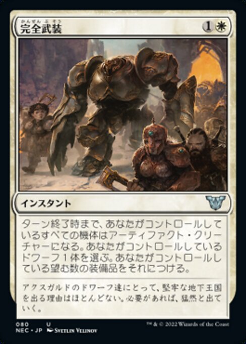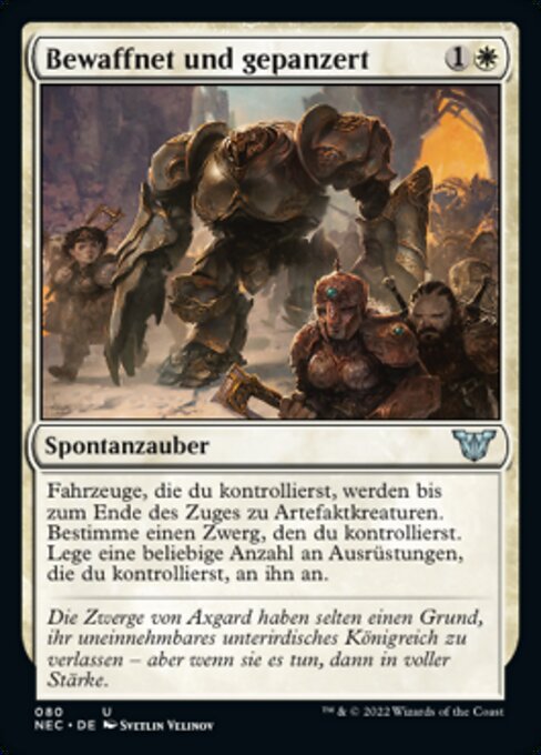 |  Variations— Parts— | Armati e CorazzatiI Veicoli che controlli diventano creature artefatto fino alla fine del turno. Scegli un Nano che controlli. Assegnagli un qualsiasi numero di Equipaggiamenti che controlli.