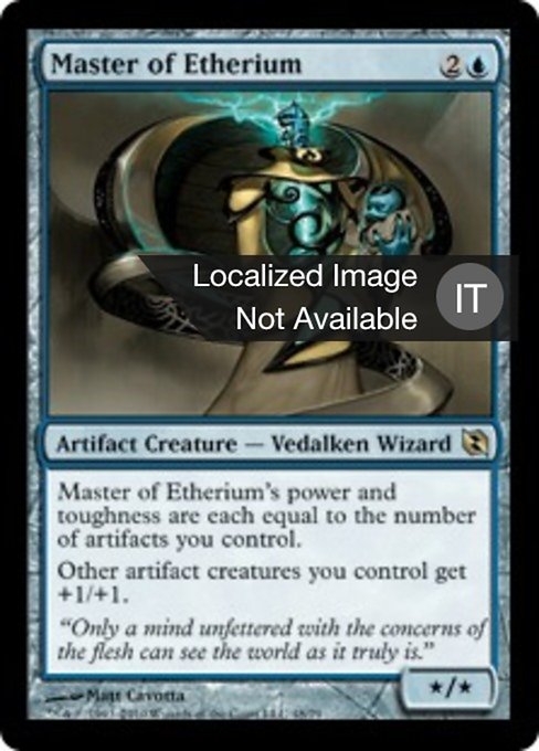|  Variations— Parts— | Maestro di Eterium* / * La forza e la costituzione del Maestro di Eterium sono pari al numero di artefatti che controlli. Le altre creature artefatto che controlli prendono +1/+1.