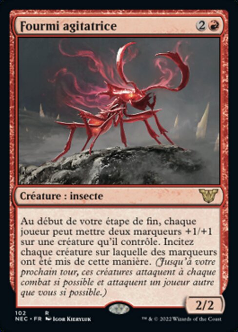 |  Variations— Parts— | 煽動蟻2 / 2 在你的結束步驟開始時,每位玩家各可以在一個由其操控的生物上放置兩個+1/+1指示物。煽惑每個上面以此法放置了指示物的生物。(直到你的下一個回合,那些生物每次戰鬥若能攻擊,則必須攻擊,且若能攻擊除你以外的玩家,則必須如此作。)