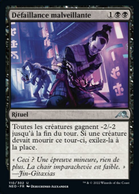 |  Variations— Parts— | Malicious MalfunctionAll creatures get -2/-2 until end of turn. If a creature would die this turn, exile it instead.