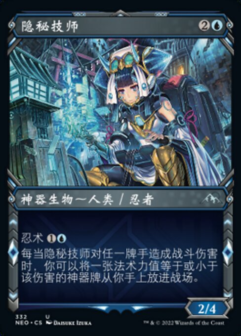 |  Variations : 1Parts— | Covert Technician2 / 4 Ninjutsu  Whenever this creature deals combat damage to a player, you may put an artifact card with mana value less than or equal to that damage from your hand onto the battlefield.