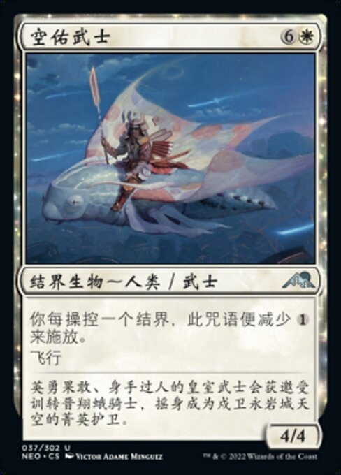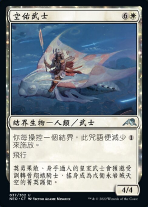![]() Variations : 1Parts— | Sky-Blessed Samurai4 / 4 Affinity for enchantments (This spell costs Flying
