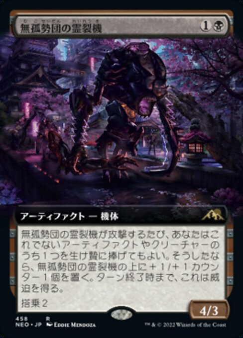 |  Variations : 2Parts— | Mukotai Soulripper4 / 3 Whenever this Vehicle attacks, you may sacrifice another artifact or creature. If you do, put a +1/+1 counter on this Vehicle and it gains menace until end of turn.Crew 2 (Tap any number of creatures you control with total power 2 or more : This Vehicle becomes an artifact creature until end of turn.)
