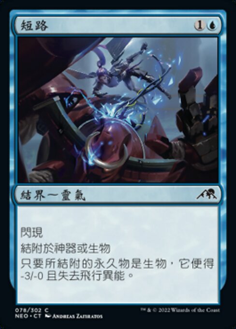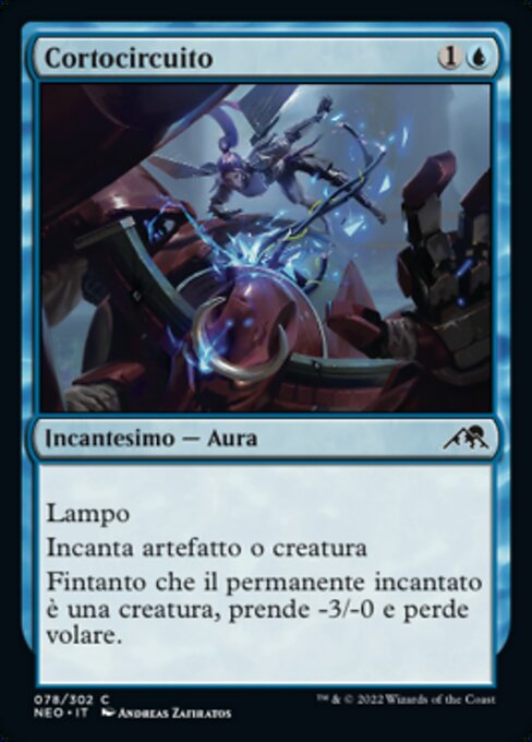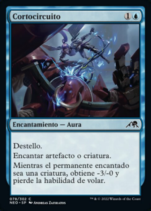 ![]() Variations— Parts— | Short CircuitFlash Enchant artifact or creature As long as enchanted permanent is a creature, it gets -3/-0 and loses flying.