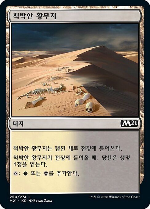|  Variations— Parts— | 척박한 황무지척박한 황무지는 탭된 채로 전장에 들어온다. 척박한 황무지가 전장에 들어올 때, 당신은 생명 1점을 얻는다.