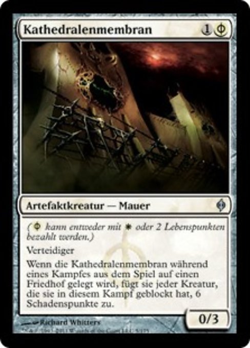 ![]() Variations— Parts— | Cathedral Membrane0 / 3 ( Defender When this creature dies during combat, it deals 6 damage to each creature it blocked this combat.