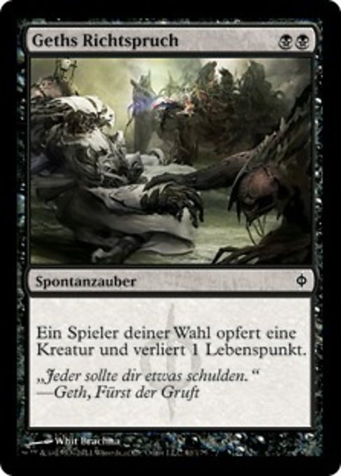 ![]() Variations— Parts— | Geth's VerdictTarget player sacrifices a creature of their choice and loses 1 life.