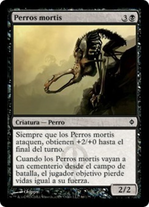 |  Variations— Parts— | Mortis Dogs2 / 2 Whenever this creature attacks, it gets +2/+0 until end of turn. When this creature dies, target player loses life equal to its power.