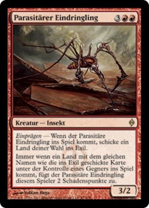 |  Variations— Parts— | Invader Parasite3 / 2 Imprint — When this creature enters, exile target land. Whenever a land an opponent controls with the same name as the exiled card enters, this creature deals 2 damage to that player.
