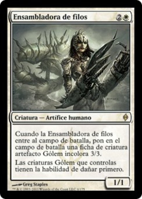 ![]() Variations— Parts— | Épisseuse de lames1 / 1 Quand l'Épisseuse de lames arrive sur le champ de bataille, mettez sur le champ de bataille un jeton de créature-artefact 3/3 incolore Golem. Les créatures Golem que vous contrôlez ont l'initiative.