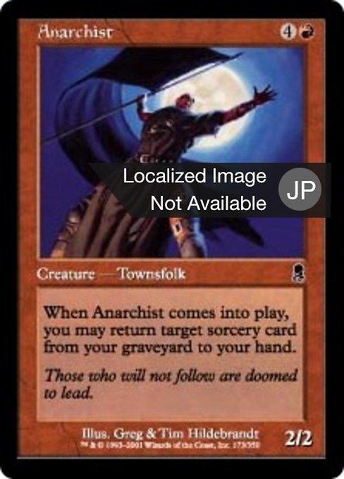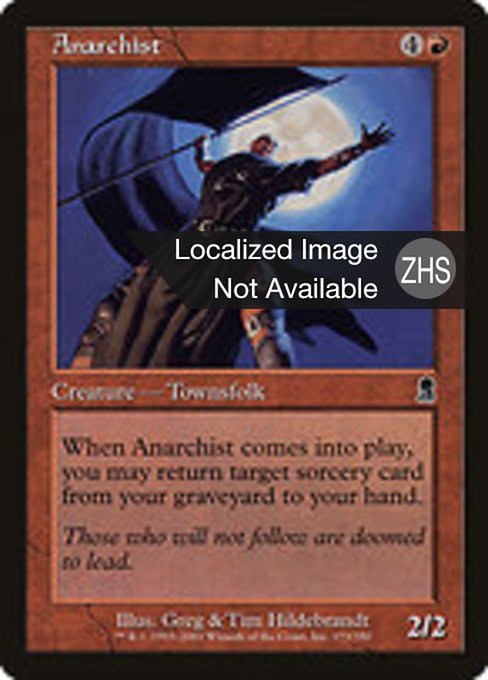 |  Variations— Parts— | Anarchist2 / 2 When this creature enters, you may return target sorcery card from your graveyard to your hand.