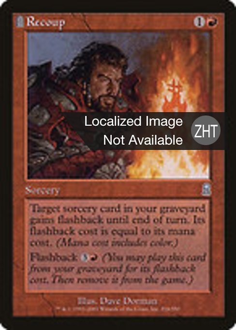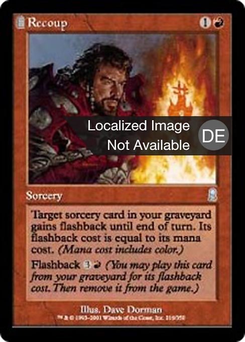 |  Variations— Parts— | RecoupTarget sorcery card in your graveyard gains flashback until end of turn. The flashback cost is equal to its mana cost. (Mana cost includes color.) Flashback