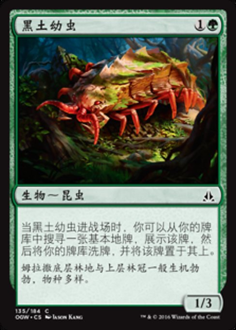 |  Variations— Parts— | Loam Larva1 / 3 When this creature enters, you may search your library for a basic land card, reveal it, then shuffle and put that card on top.