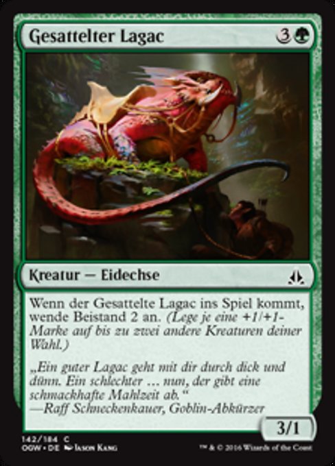 |  Variations— Parts— | Saddleback Lagac3 / 1 When this creature enters, support 2. (Put a +1/+1 counter on each of up to two other target creatures.)