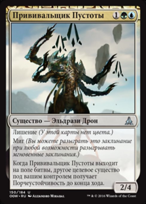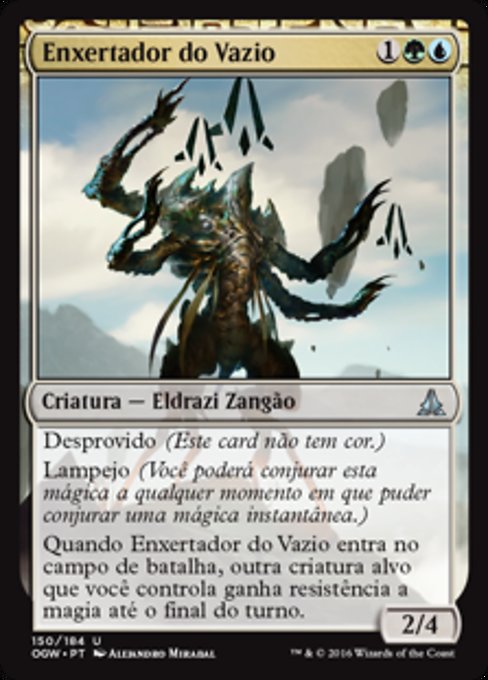 |  Variations— Parts— | Void Grafter2 / 4 Devoid (This card has no color.) Flash (You may cast this spell any time you could cast an instant.) When this creature enters, another target creature you control gains hexproof until end of turn.
