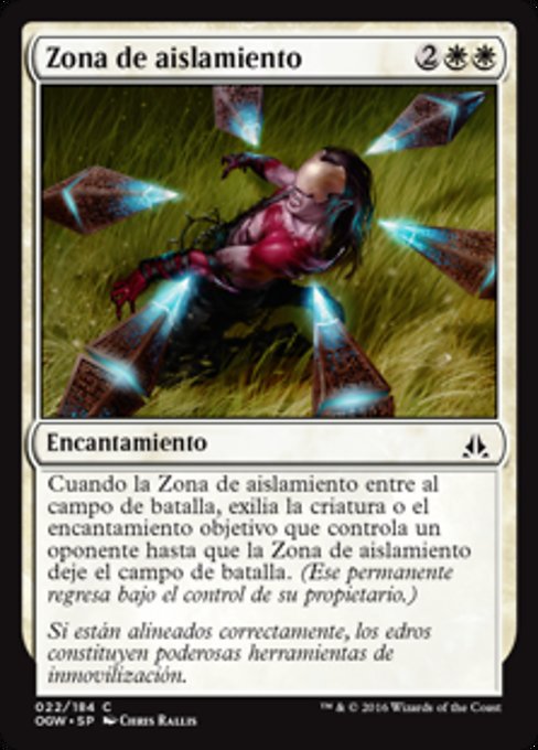 ![]() Variations— Parts— | Isolation ZoneWhen this enchantment enters, exile target creature or enchantment an opponent controls until this enchantment leaves the battlefield. (That permanent returns under its owner's control.)
