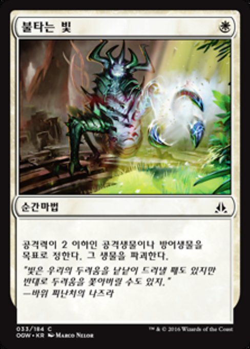 ![]() Variations— Parts— | Searing LightDestroy target attacking or blocking creature with power 2 or less.
