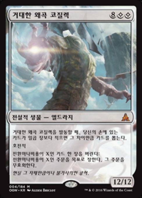 |  Variations— Parts— | Kozilek, the Great Distortion12 / 12 When you cast this spell, if you have fewer than seven cards in hand, draw cards equal to the difference. Menace Discard a card with mana value X: Counter target spell with mana value X.