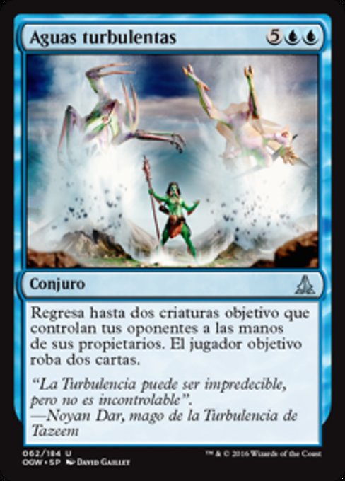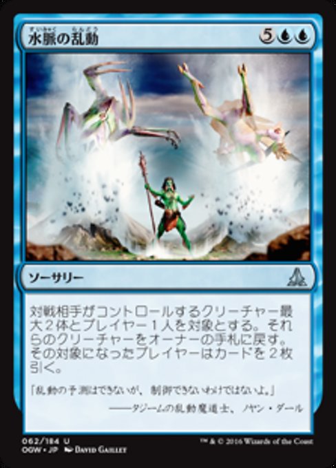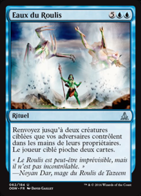 ![]() Variations— Parts— | Roiling WatersReturn up to two target creatures your opponents control to their owners' hands. Target player draws two cards.
