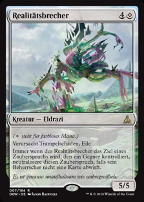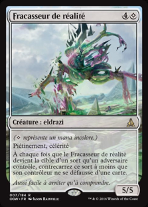 |  Variations— Parts— | Reality Smasher5 / 5 ( Trample, haste Whenever this creature becomes the target of a spell an opponent controls, counter that spell unless its controller discards a card.