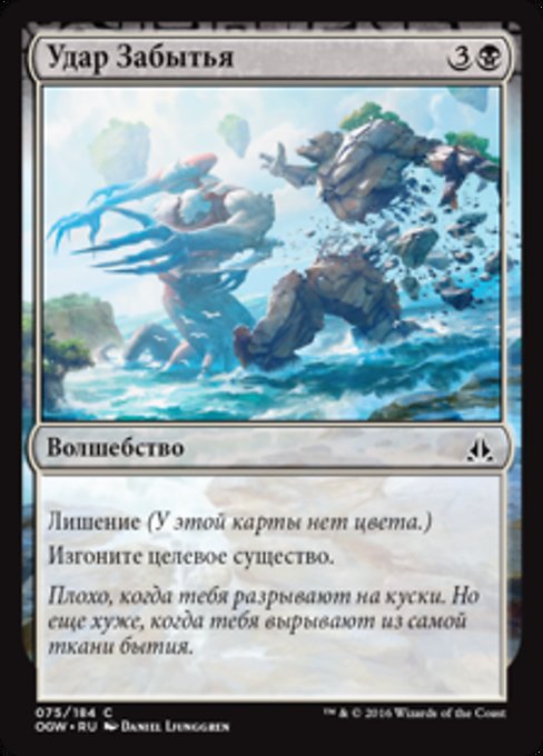 ![]() Variations— Parts— | Oblivion StrikeDevoid (This card has no color.) Exile target creature.