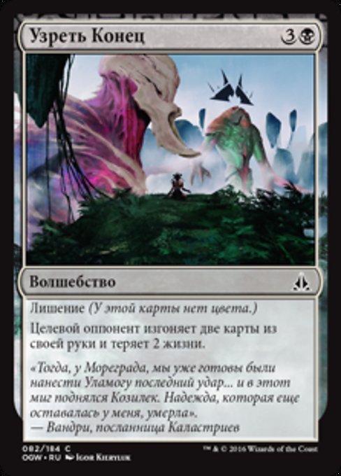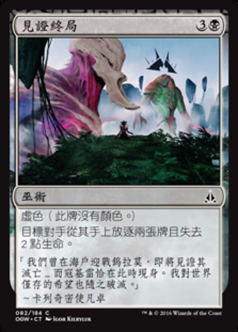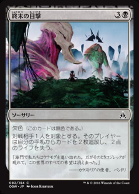 ![]() Variations— Parts— | Witness the EndDevoid (This card has no color.) Target opponent exiles two cards from their hand and loses 2 life.