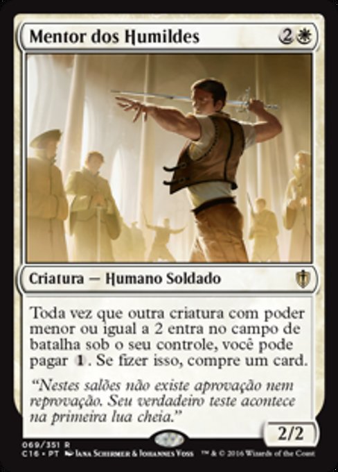 |  Variations— Parts— | Mentor dos Humildes2 / 2 Toda vez que outra criatura com poder igual ou inferior a 2 entra no campo de batalha sob seu controle, você pode pagar