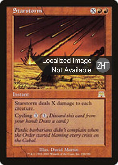 |  Variations— Parts— | StarstormStarstorm deals X damage to each creature. Cycling