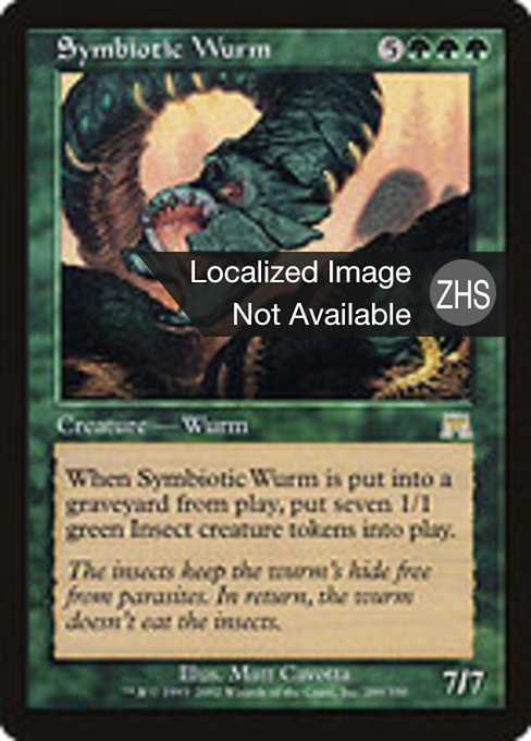 ![]() Variations— Parts— | 共生のワーム7 / 7 When this creature dies, create seven 1/1 green Insect creature tokens.