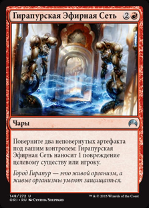 |  Variations— Parts— | Ghirapur Aether GridTap two untapped artifacts you control: This enchantment deals 1 damage to any target.