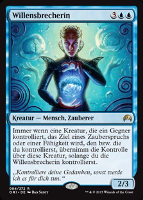 ![]() Variations— Parts— | Willbreaker2 / 3 Whenever a creature an opponent controls becomes the target of a spell or ability you control, gain control of that creature for as long as you control this creature.