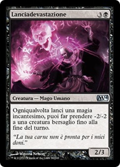 |  Variations— Parts— | Lanciadevastazione2 / 3 Ogniqualvolta lanci una magia incantesimo, puoi far prendere -2/-2 a una creatura bersaglio fino alla fine del turno.
