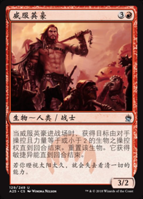 |  Variations— Parts— | 威服英豪3 / 2 当威服英豪进战场时,获得目标由对手操控且力量等于或小于2的生物之操控权直到回合结束。重置该生物。它获得敏捷异能直到回合结束。(它此回合便能攻击与