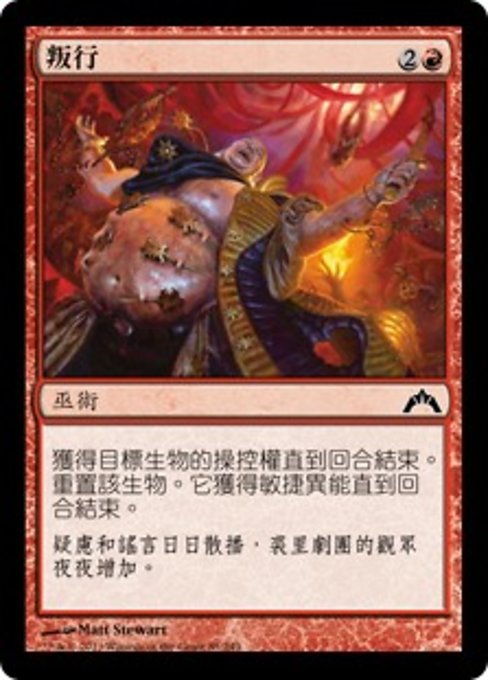 |  Variations— Parts— | 叛行獲得目標生物的操控權直到回合結束。重置該生物。它獲得敏捷異能直到回合結束。(它此回合便能攻擊與